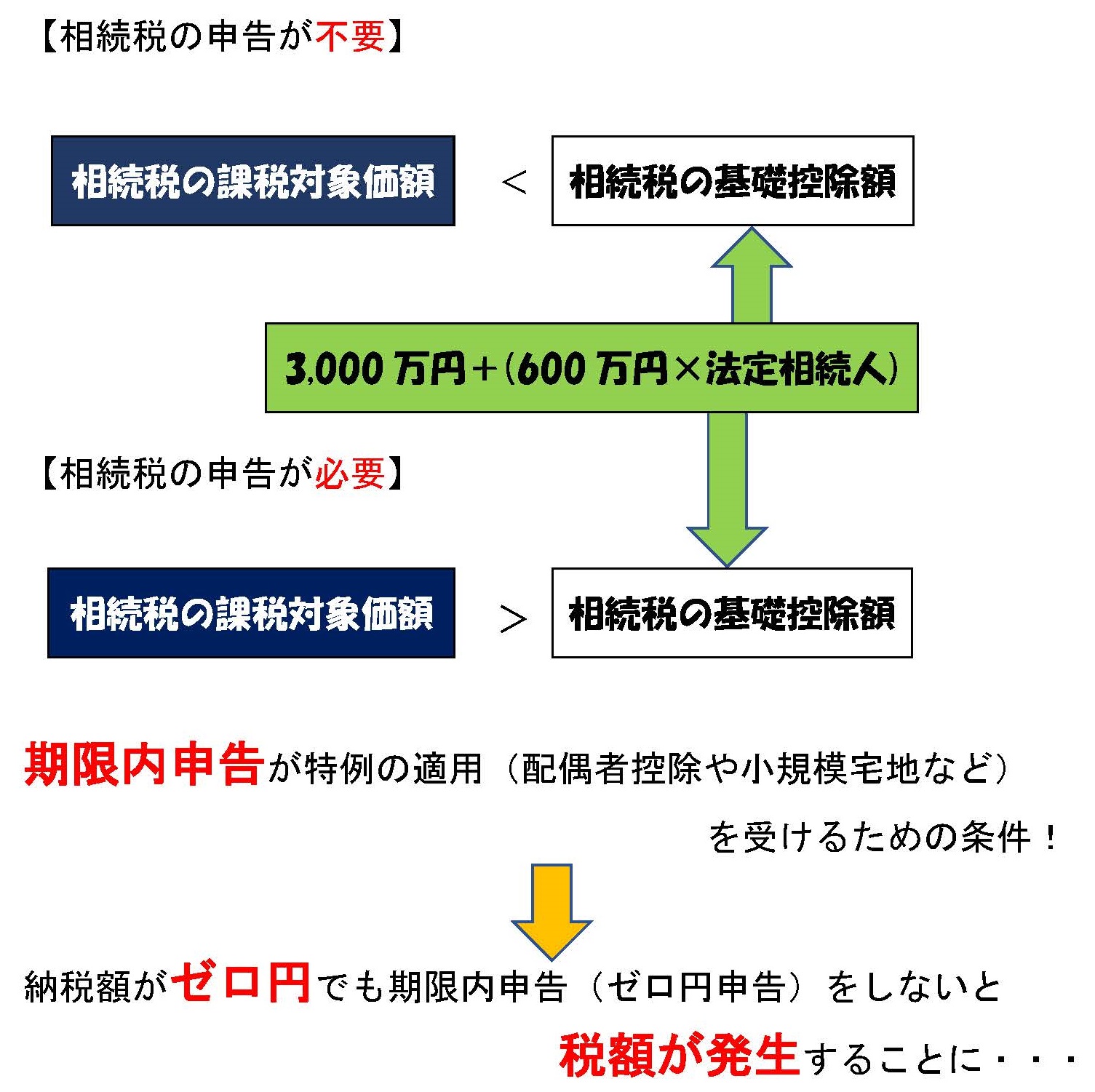 注意が必要なのは、配偶者控除の特例や小規模宅地等の特例の適用により相続税がゼロ円になる場合でも、申告しなければ特例が適用されないということです。